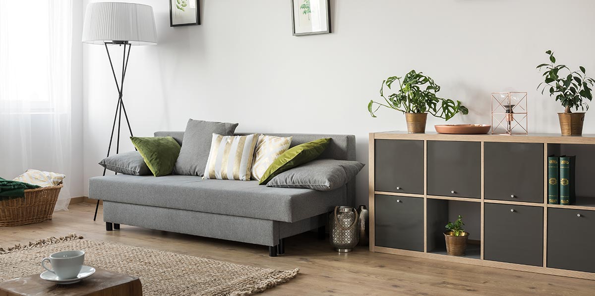 - Walnut Wood finish with Charcoal Fabric upholstery