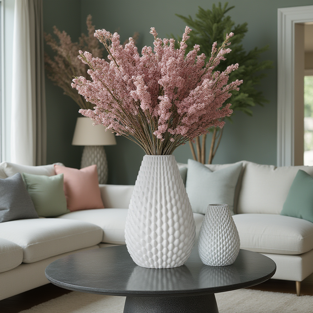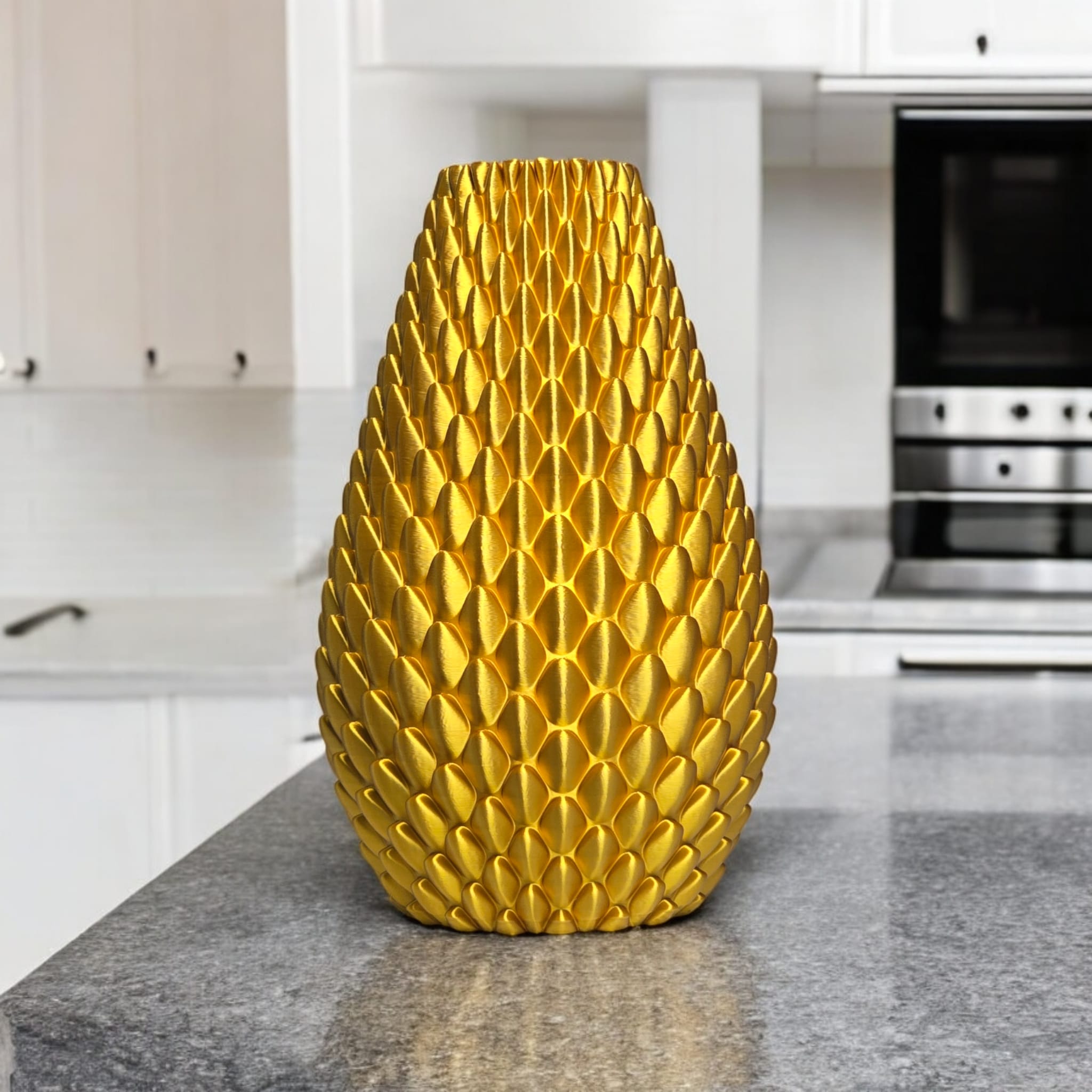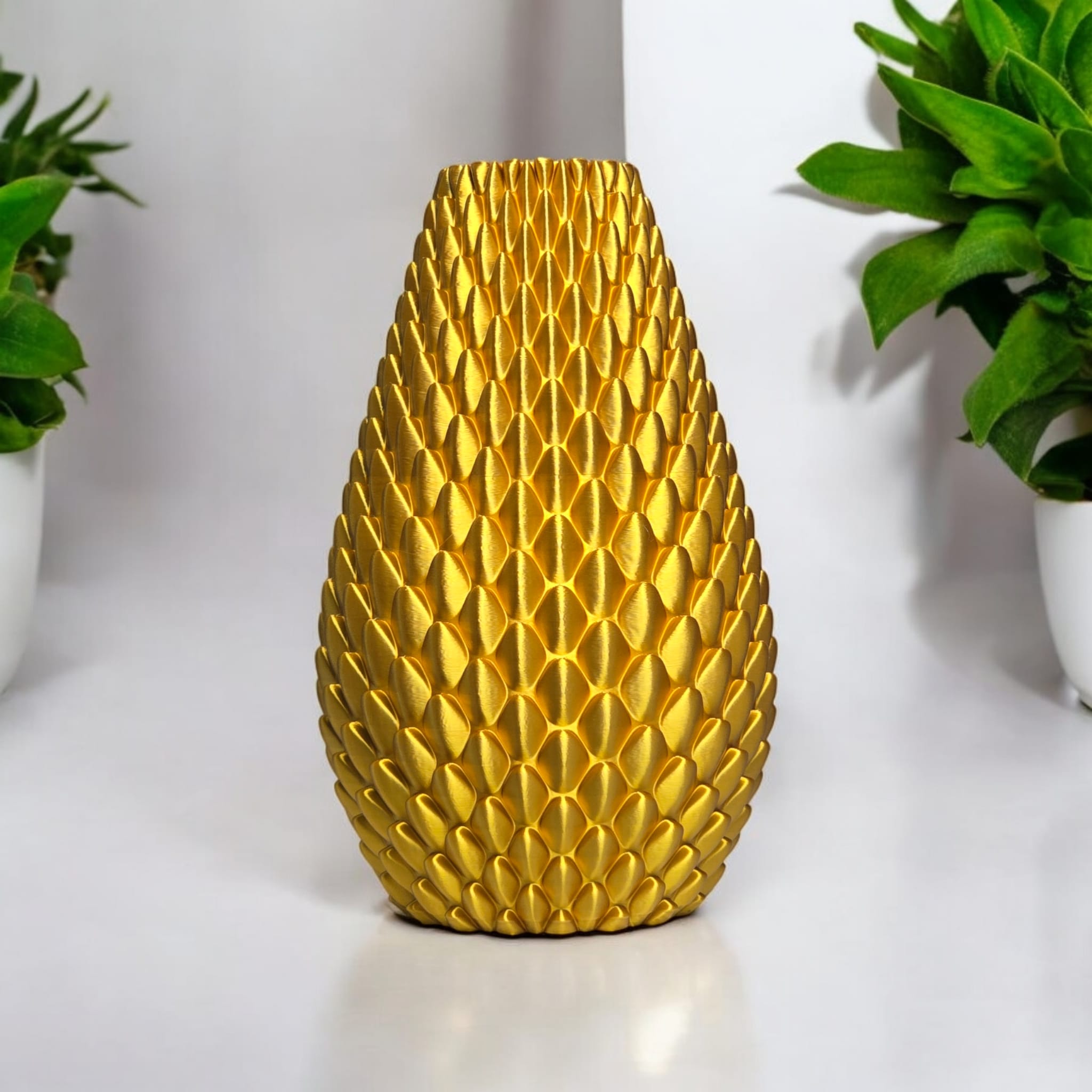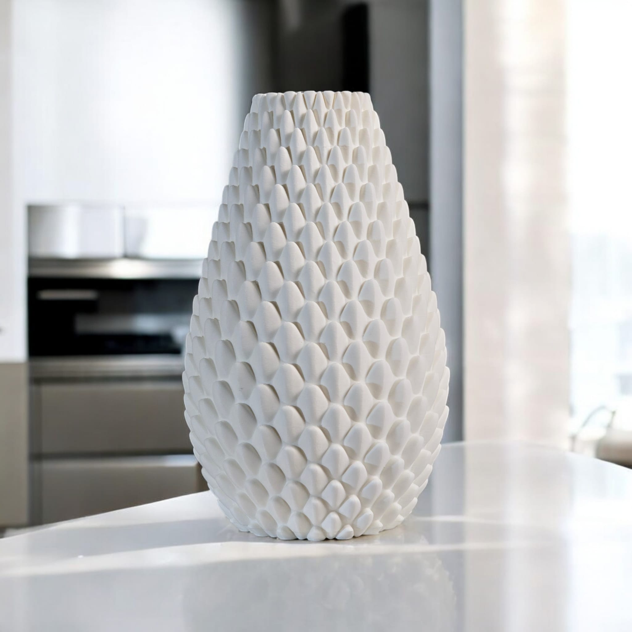 The DragonScale vase showcases a stunning textured pattern inspired by the intricate beauty of dragon scales. This 3D-printed piece combines a modern geometric design with an organic flair, making it a standout addition to any space. Its elegant, tapered shape is perfect for displaying flowers, dried botanicals, or as a standalone decorative accent. Crafted with precision and durability, this vase effortlessly enhances your home decor.